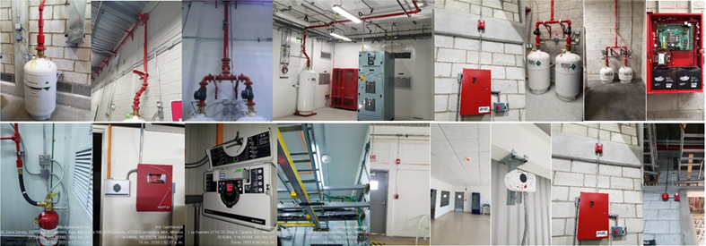 * Sistemas de supresión con diversos agentes extintores como Ecaro 25, FM-200, Novec 1230, CO2, Proinert, Inergen, PQS, etc.